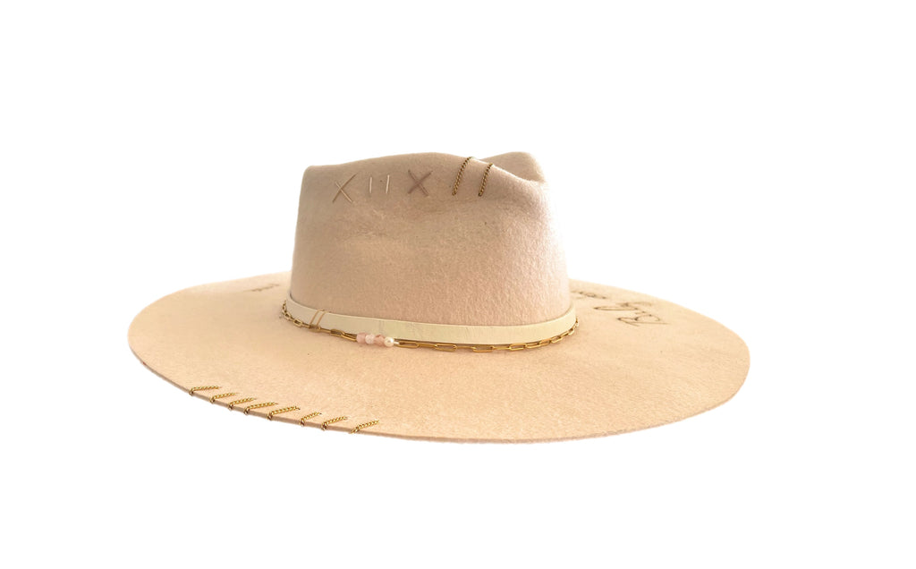 Ce chapeau beige en feutre premium réunit finesse, caractère et symboles puissants pour créer une pièce unique, pensée comme un véritable bijou à porter.